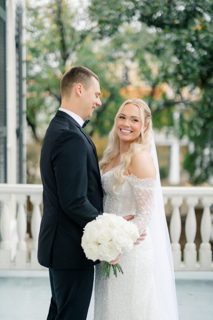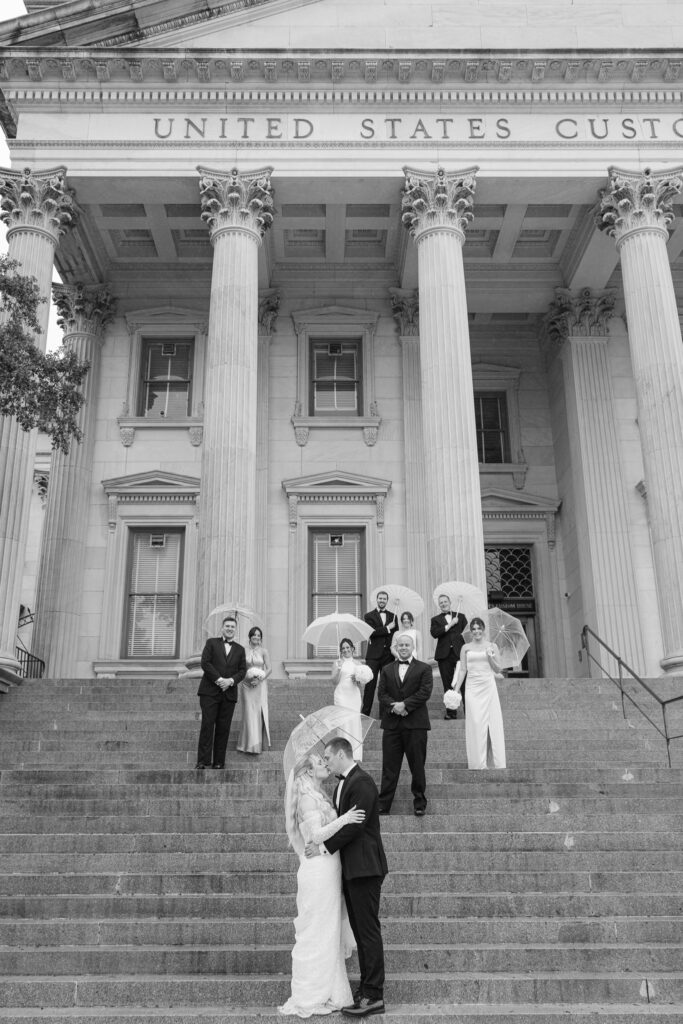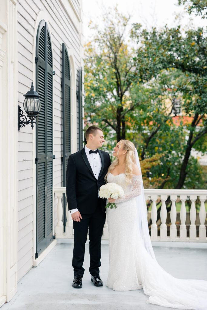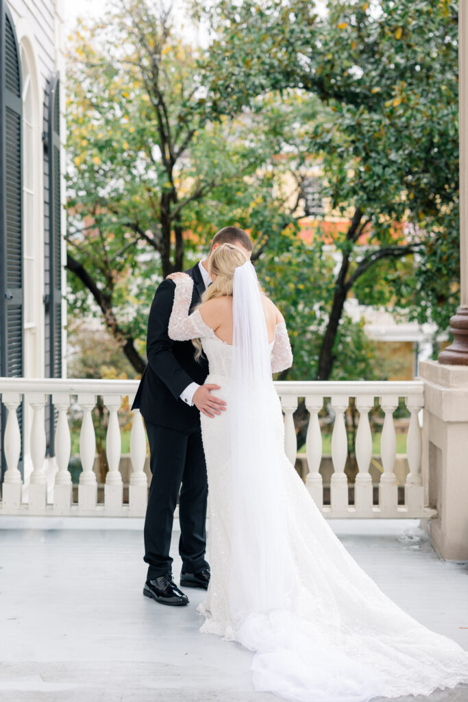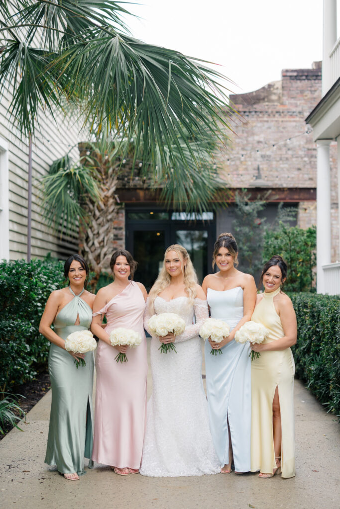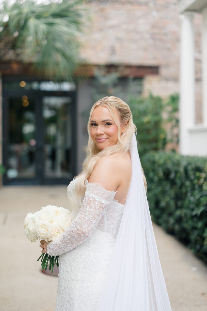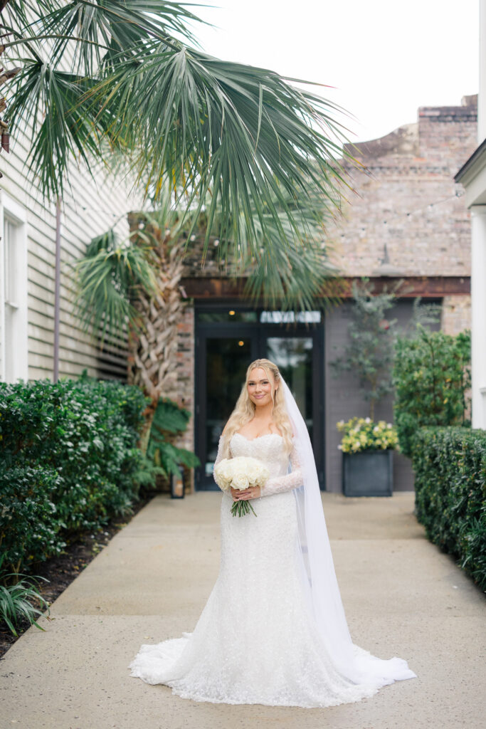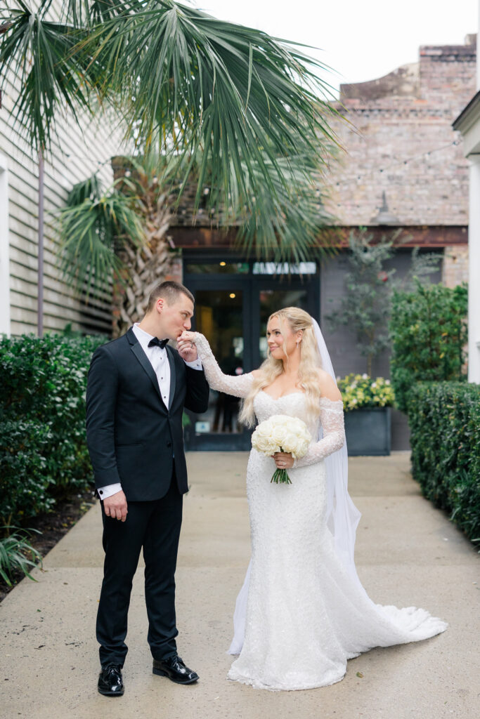 Their design was timeless and classic, blending soft neutrals and coastal elegance with the charm of Charleston’s historic architecture. The overcast sky actually created the dreamiest, even light for portraits — the kind of bright, true-to-color tones I’m always drawn to as a Charleston wedding photographer.