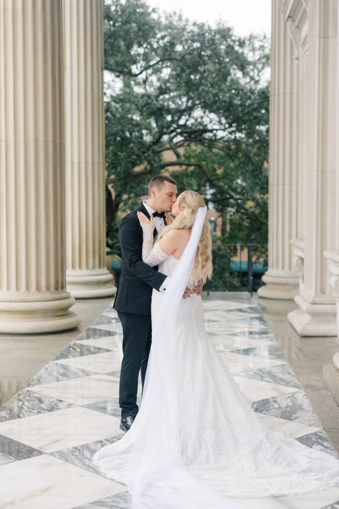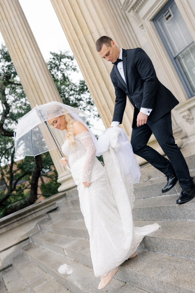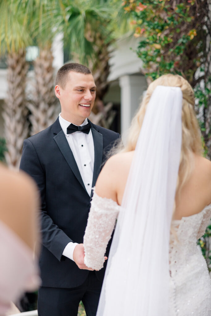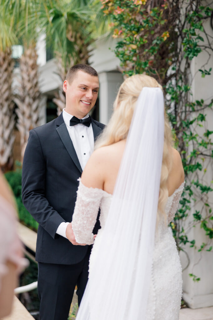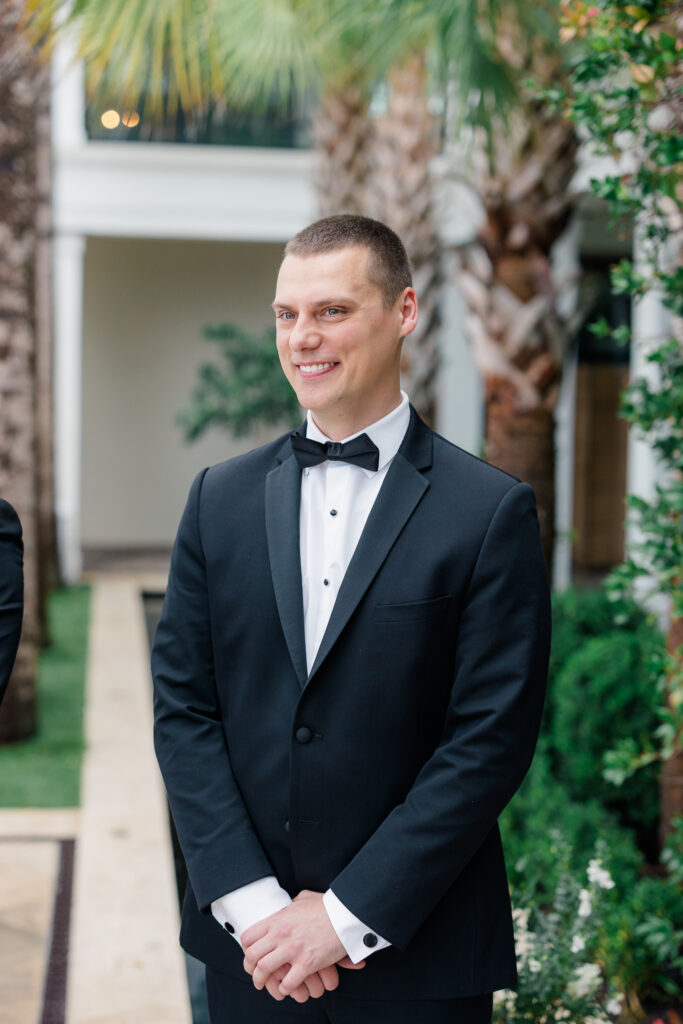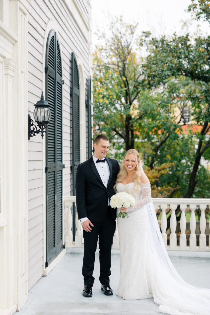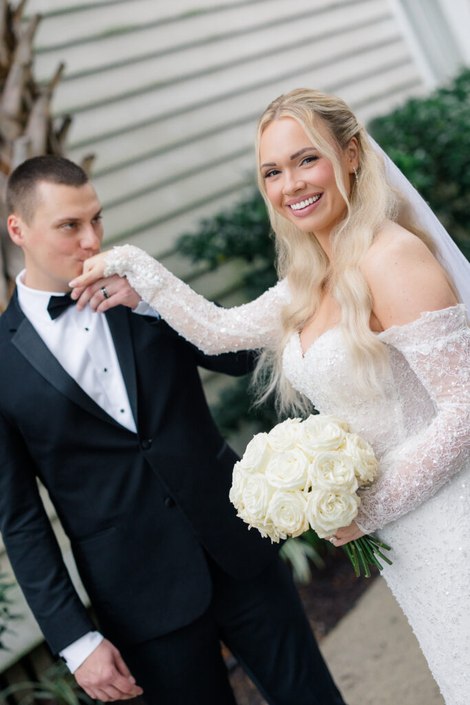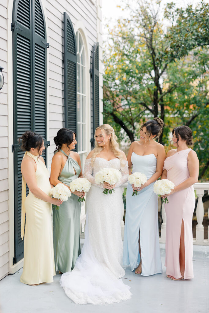 Their design was timeless and classic, blending soft neutrals and coastal elegance with the charm of Charleston’s historic architecture. The overcast sky actually created the dreamiest, even light for portraits — the kind of bright, true-to-color tones I’m always drawn to as a Charleston wedding photographer.