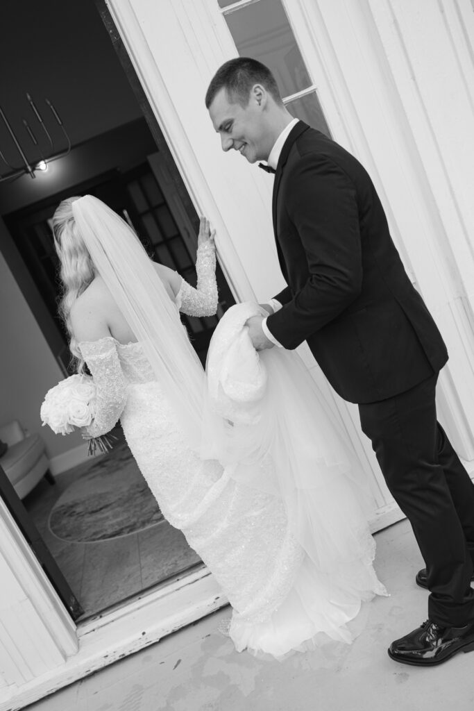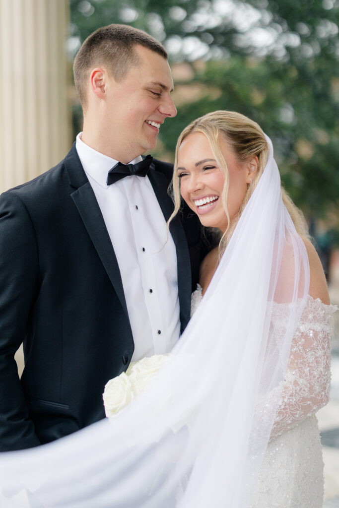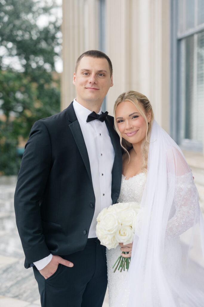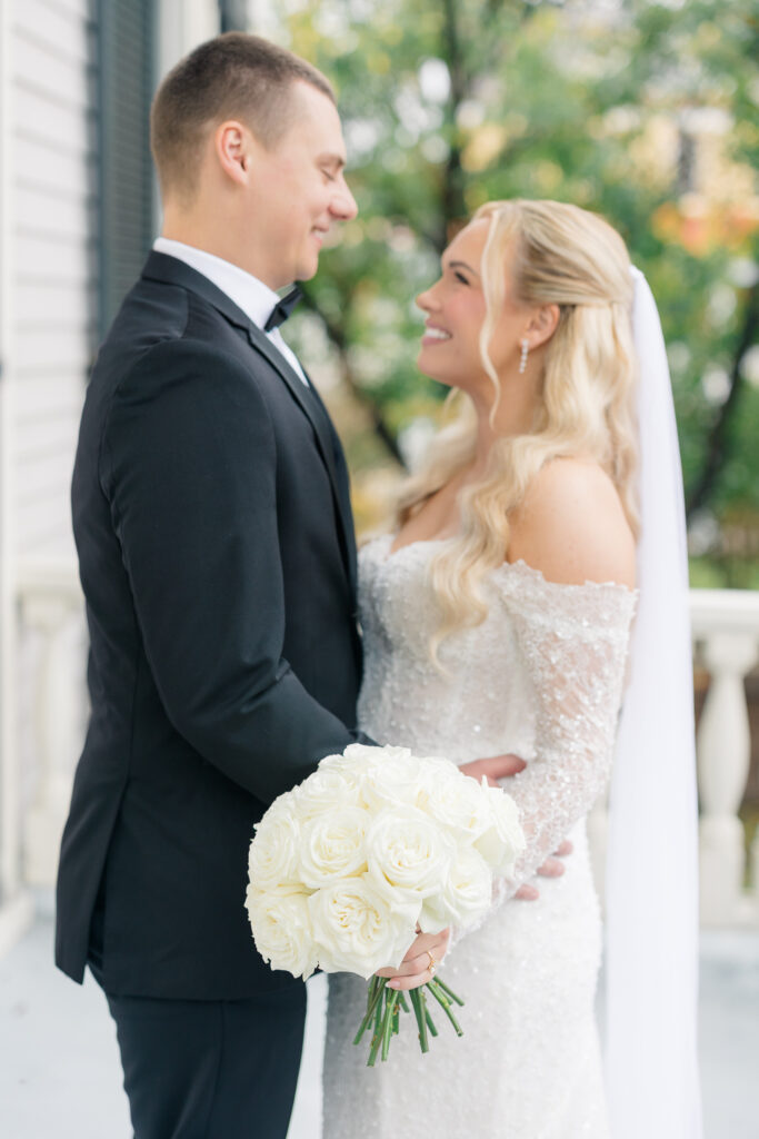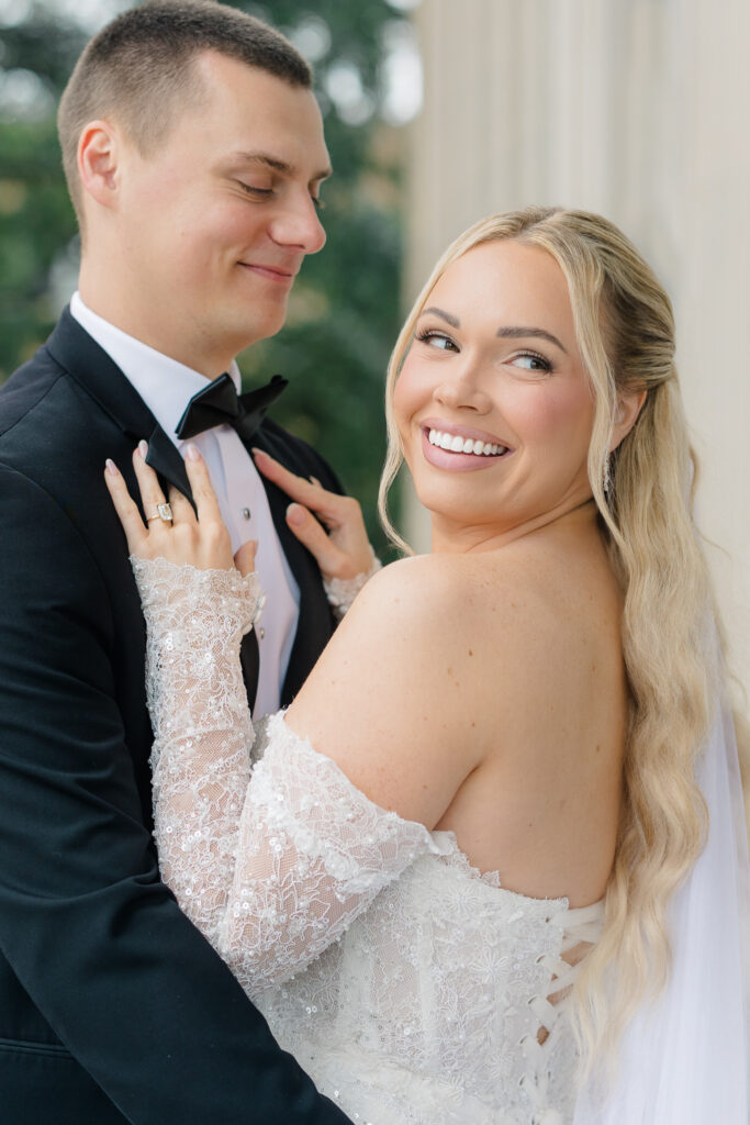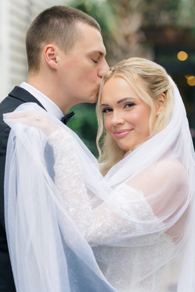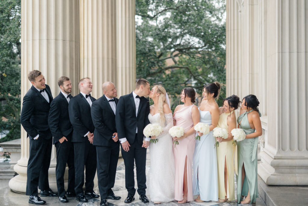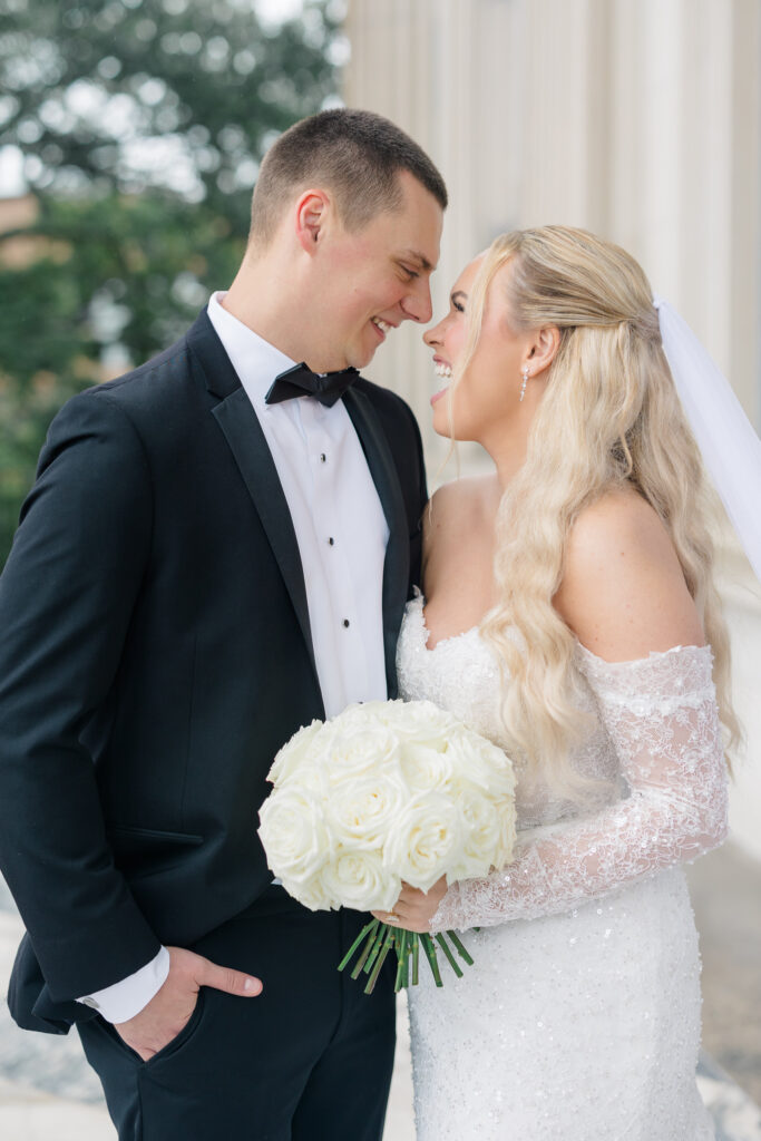 Their design was timeless and classic, blending soft neutrals and coastal elegance with the charm of Charleston’s historic architecture. The overcast sky actually created the dreamiest, even light for portraits — the kind of bright, true-to-color tones I’m always drawn to as a Charleston wedding photographer.
