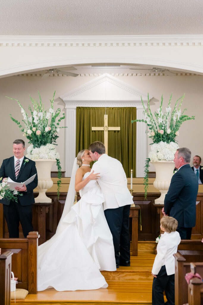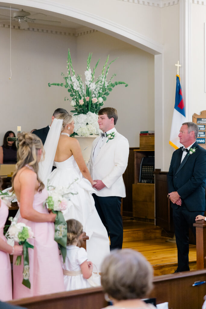 The day began with a traditional church ceremony surrounded by family, close friends, and soft morning light streaming through the stained glass. Amber and Caleb’s ceremony was full of reverence and emotion — a space where every vow and every glance carried the weight of years of love and faith. Photographing moments like these is why I love being a North Carolina wedding photographer — there’s something timeless about documenting love stories that begin in meaningful, sacred spaces.