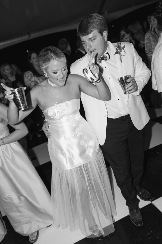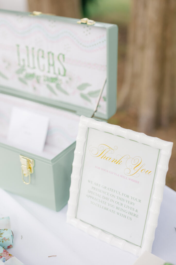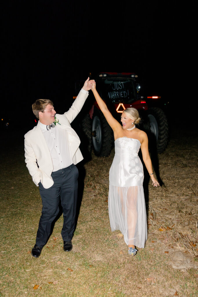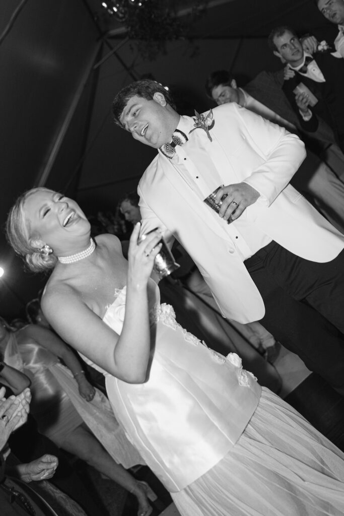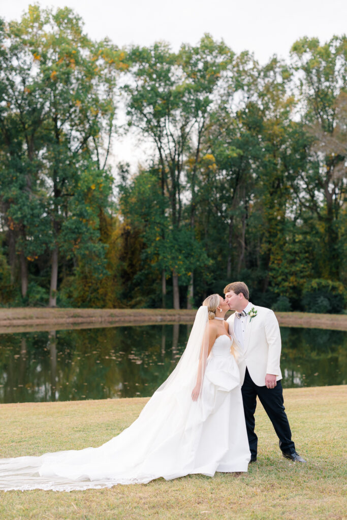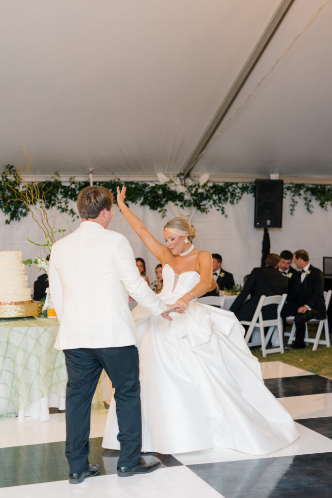 After the ceremony, guests made their way to family property, where an elegant tented reception awaited. Hosting their celebration at home made the day even more personal. Every corner of the property held memories — from childhood afternoons spent in the backyard to family gatherings under the same oak trees that now framed their wedding day.
