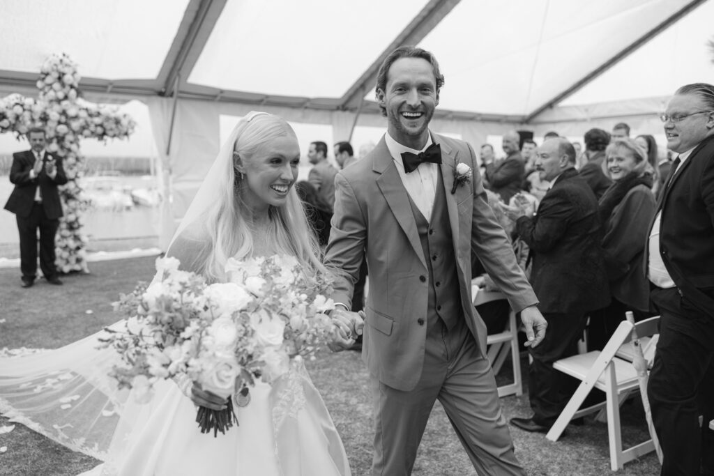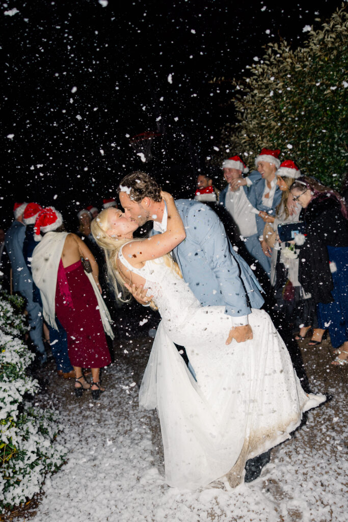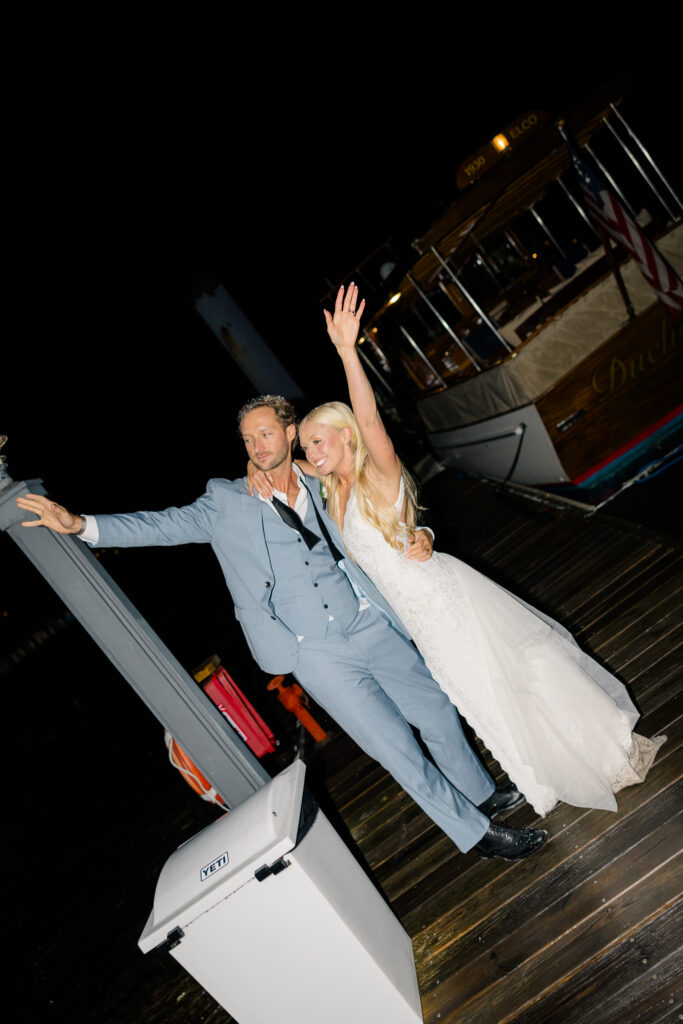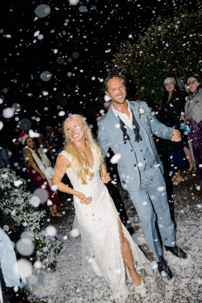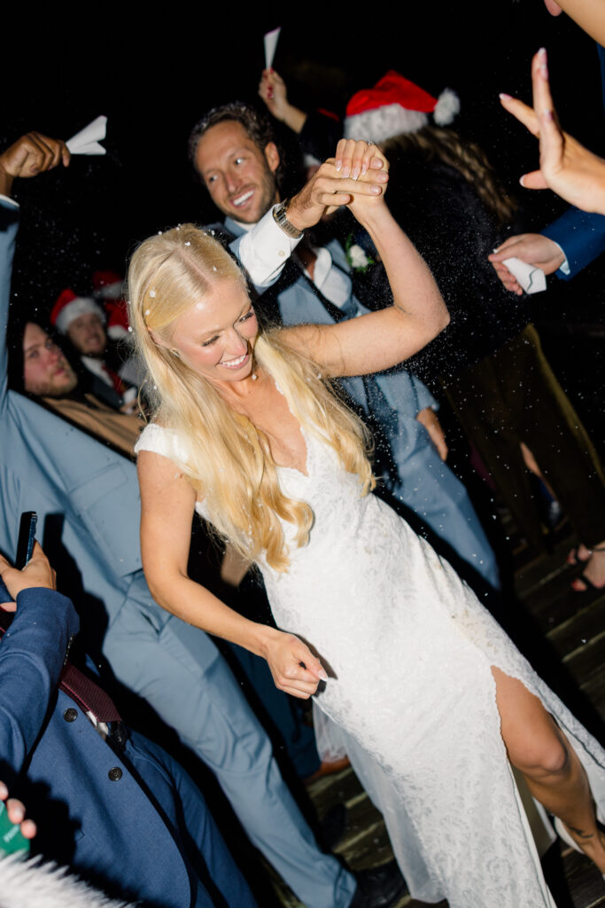 Just when the day couldn’t feel more magical, Katie & Cadan ended the night with a snowy grand exit before hopping onto a boat that carried them to the after party. It was whimsical, cinematic, and the perfect ending to a coastal winter celebration—pure Figure Eight Island wedding magic.