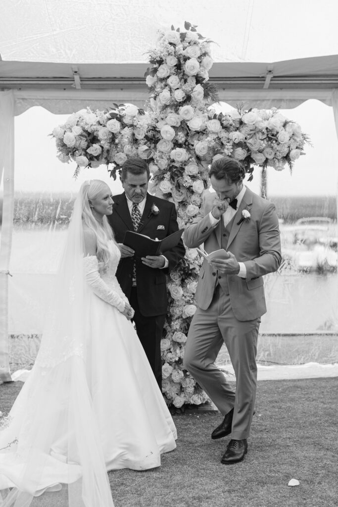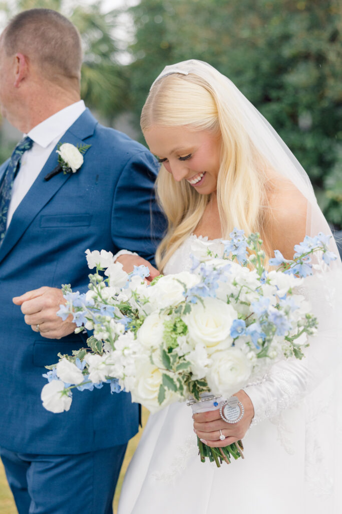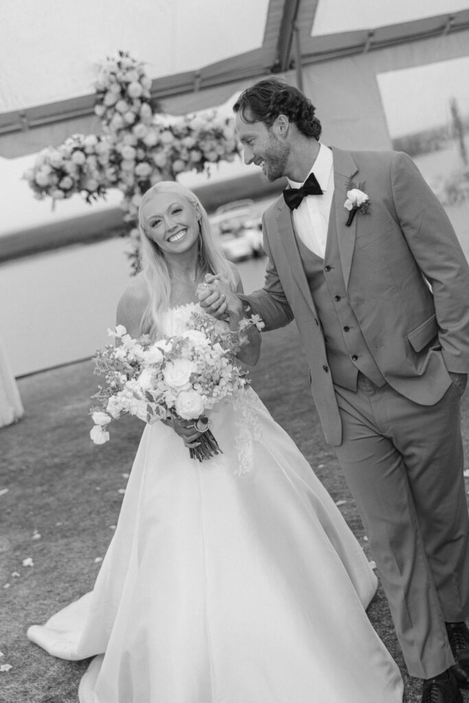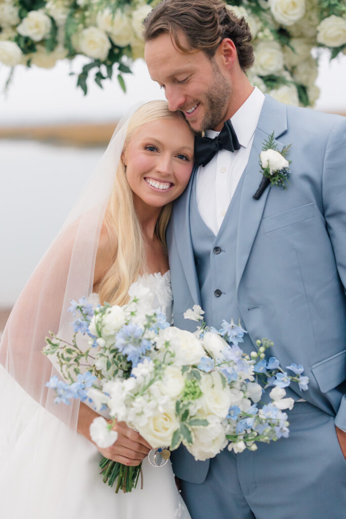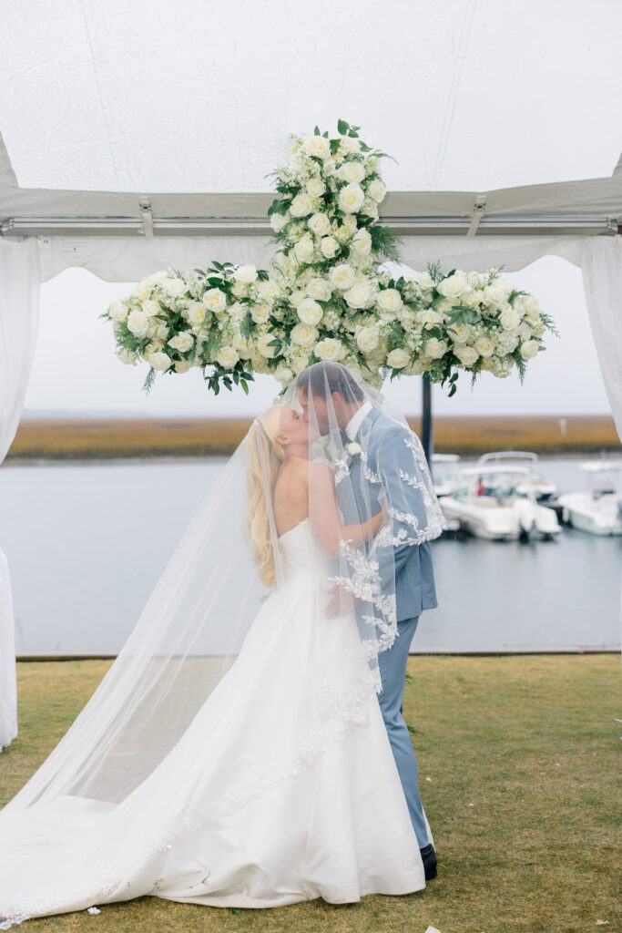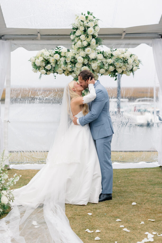 Despite steady December rain, their wedding day glowed with joy, warmth, and intention. With the incredibly talented Salt Harbor Designs leading the planning and floral design, every detail of this Figure Eight Island wedding felt refined, personal, and beautifully wintery!